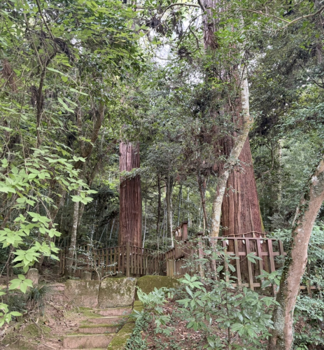そしてその先に現れるのが、まっすぐ空に向かって立つ、森の中心にある二本の大杉。