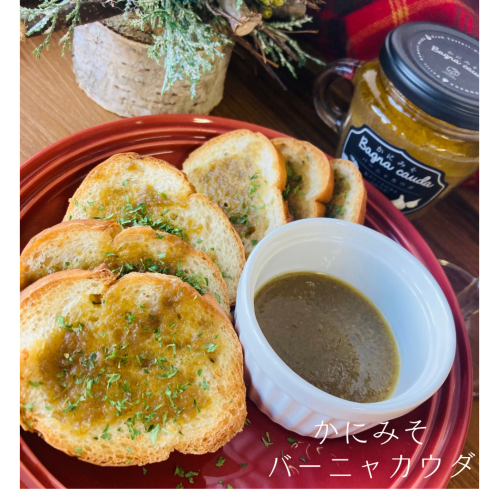 新鮮な野菜をカットしてディップしたり、バケットに塗ってトーストするだけで、贅沢な味わいを楽しめ、ひと口食べると、ニンニク🧄とかにみその風味が広がり、白ワインとの相性抜群です🍷💕