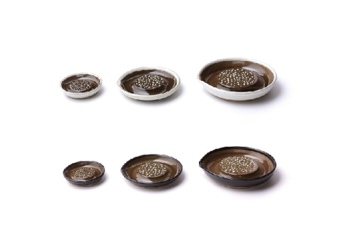 石見焼の特長は、鋭く欠けにくいすり鉢のくし目に活かされています。また、磁器とは異なり、陶器の表面には特有のザラザラ感があり、食材をしっかりとらえることができます。このため、石見焼はすり鉢作りに最適な焼き物です。